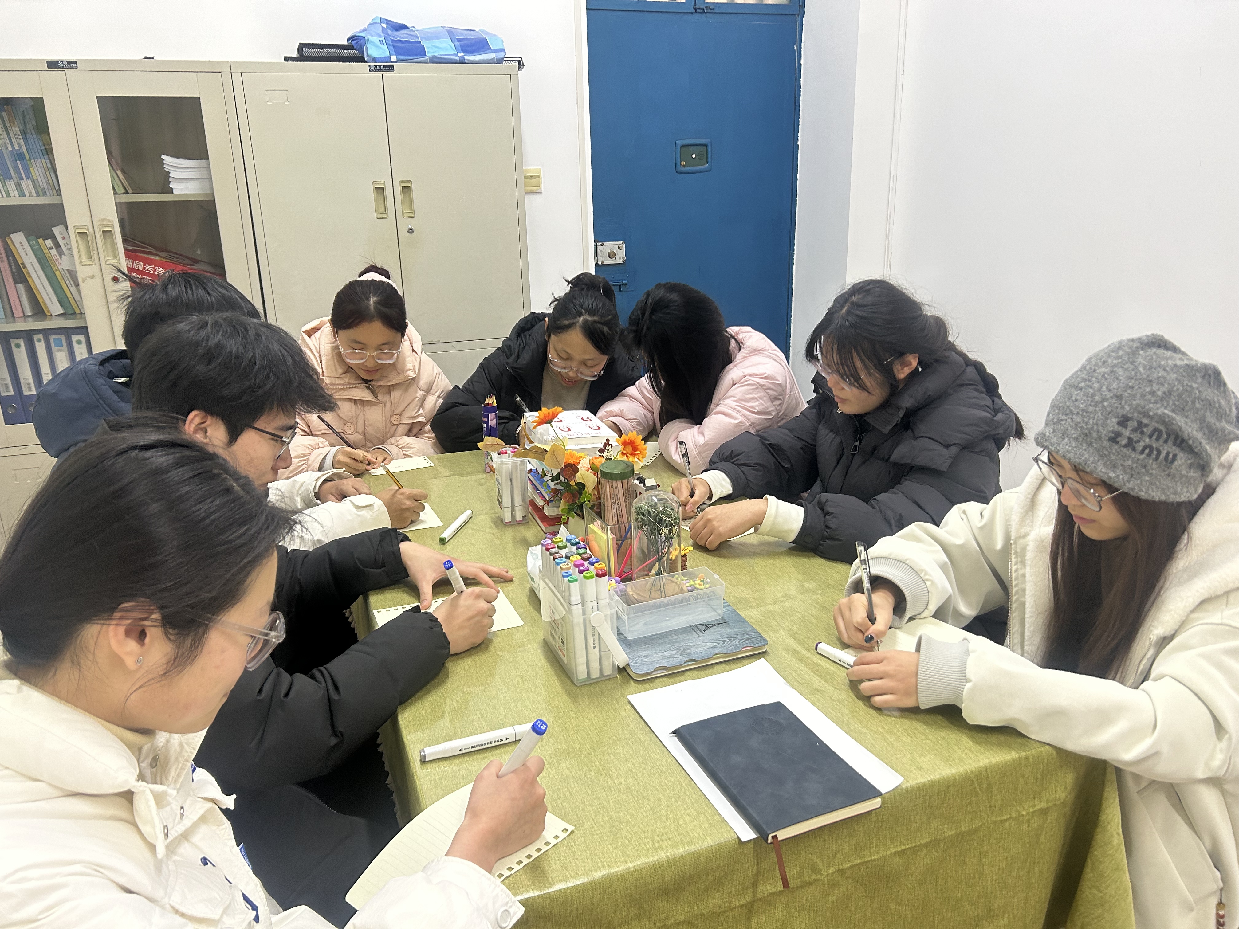 活动中,心理辅导员詹美晨老师带领同学们通过“我的幸运数字”游戏进行简短的自我介绍,迅速拉近了彼此的距离,营造出温暖开放的交流氛围。在“焦虑具象化”环节,参与者通过书写具体焦虑源,将模糊焦虑转化为可处理的具体问题。通过集体讨论,大家发现许多焦虑具有共性,并非独自面对。詹老师引导大家分析焦虑,在日常生活中如何使用理性情绪疗法调节自己的负面情绪。随后的“共享策略”环节中,每人随机抽取他人焦虑内容,写下基于认知行为疗法的实用建议:将大任务分解为小步骤、尝试腹式呼吸缓解紧张等,这些内容成为参与者的“抗焦虑工具包”。最后的“涂绘”环节,员工们专注于配色与涂绘,体验正念专注对平静心绪的效果,感受在压力中依然能发现美好。