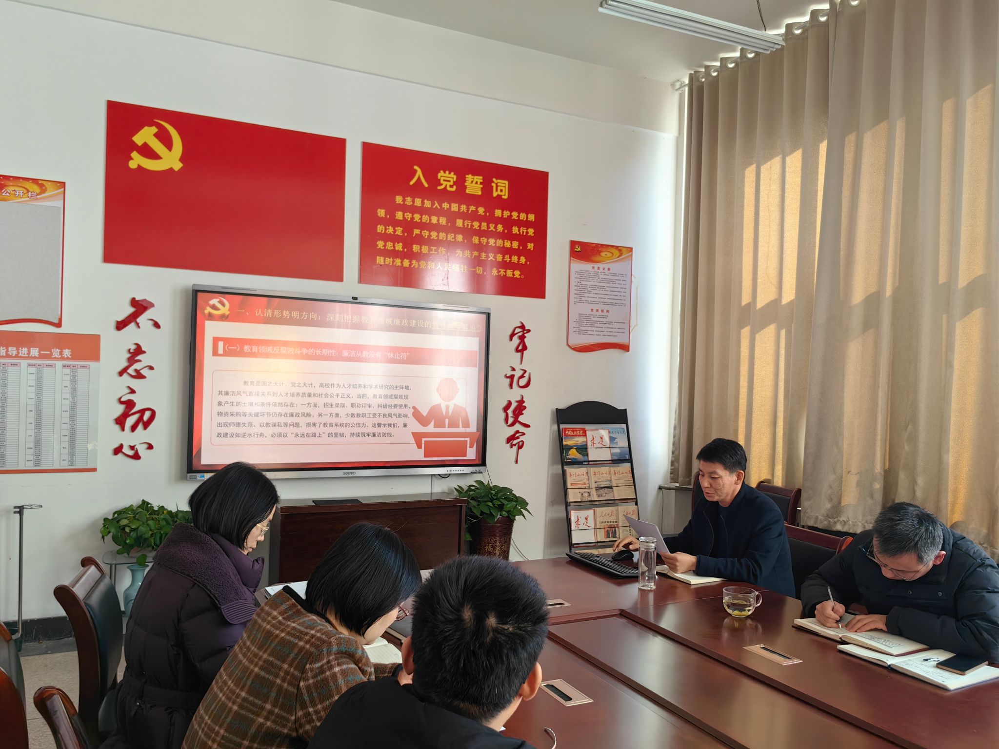 为深入学习贯彻党的二十届四中全会关于全面从严治党的重要部署,切实强化教职工廉洁从教意识,筑牢拒腐防变思想根基,11月27日下午,太阳成集团tyc33455cc在2317会议室以“坚守廉洁底线,筑牢拒腐防线”为主题举办专题廉政教育党课。太阳成集团tyc33455cc纪委书记孙亚南主讲,太阳成集团tyc33455cc全体教职工参加学习。