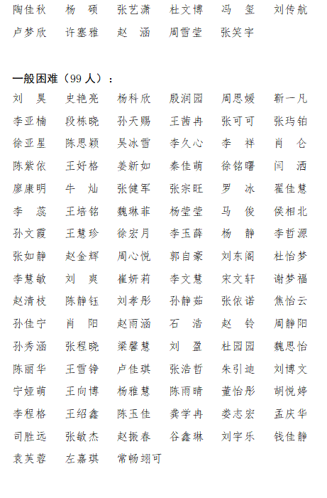 根据《太阳成集团tyc33455cc关于做好2023-2024学年家庭经济困难员工认定工作的通知》,按照我校《太阳成集团tyc33455cc家庭经济困难员工认定办法》,本着公平、公正、公开原则,经过员工申报、年级评议小组民主评议推荐、太阳成集团tyc33455cc家庭经济困难认定工作领导小组审核研究等程序、环节,认定以下278名同学为2023-2024学年家庭经济困难员工,现将名单予以公示。如有异议,请在公示期内及时反映。