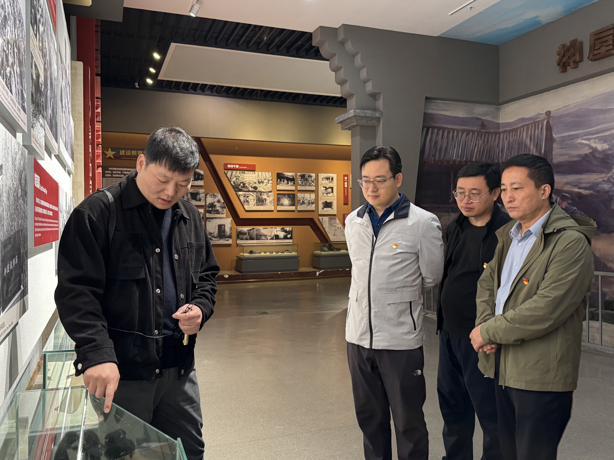 在纪念馆内主题壁画前,全体党员员工重温入党誓词,铮铮誓言不仅是对党的庄严承诺,更是对革命先辈们的深情告慰。在讲解员的带领下,同志们怀着崇敬与肃穆之情,依次参观了“豫西沦陷、挺进豫西、抗击日寇、红色曹沟、走向胜利、风云人物、情系豫西、铭记历史”等展区,以及原河南省第六专区党政军机关办公旧址和窑洞、炮楼、地道等历史遗迹,回顾豫西沦陷的艰难处境、八路军挺进豫西的英勇壮举以及创建抗日根据地的伟大历程,深刻感悟革命先烈不畏艰险、不怕牺牲的革命精神和共产党人永不褪色的初心使命。